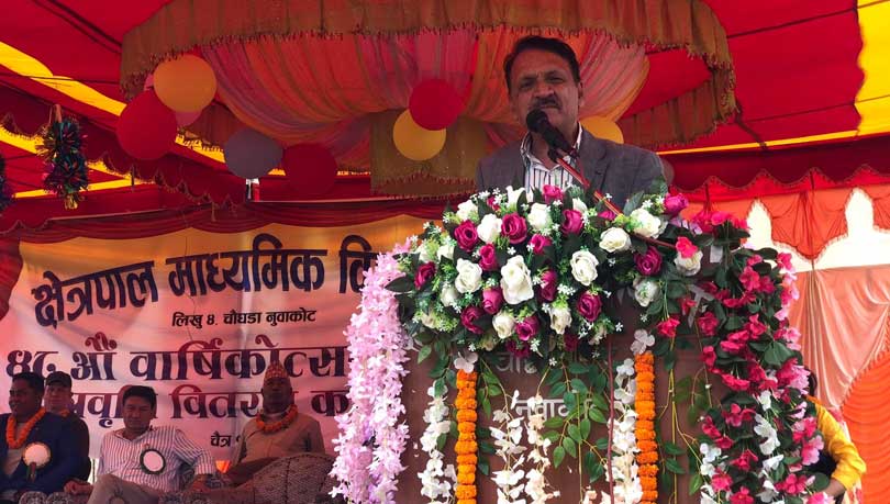 ‘हिजो डा.रामशरण महतले चुनाव जित्दा नुवाकोटमा अर्बमा बजेट आउँथ्यो’, उनले भने, ‘ओली सरकारको पालामा त्यो करोडमा झर्यो । त्यै बजेट पनि उपभोक्ता समिति बनाएर कम्युनिस्टले बाँडीचुडी खाएको गुनासो आइररहेको छ ।’