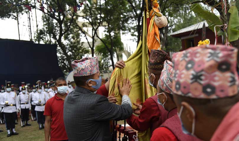क्षेत्रीले शनिबार प्रहरी प्रधान कार्यालय, सशस्त्र प्रहरी गण नम्बर १ नक्सालस्थित मौलोमा पूजाअर्चना तथा सङ्कल्प पूजा गरेका हुन् ।