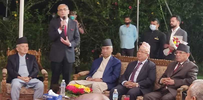 काठमाडौं । नेपालका लागि भारतीय राजदूत विनयमोहन क्वात्राको विदाइमा राखिएको रिसेप्सनमा प्रधानमन्त्री शेरबहादुर देउवासहितका शीर्ष नेताहरू सहभागी भएका छन् ।