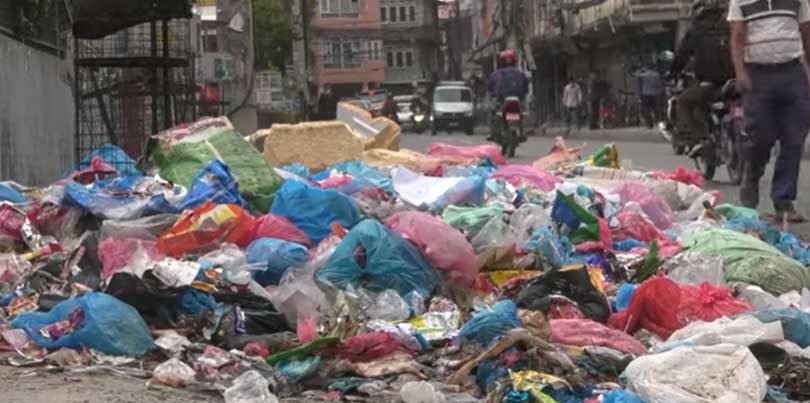 काठमाडौंका सडकहरूमा फोहरको थुप्रो रहेको चार महिना हुन थालेको छ । सडकमा हिँड्न सक्ने अवस्था छैन ।