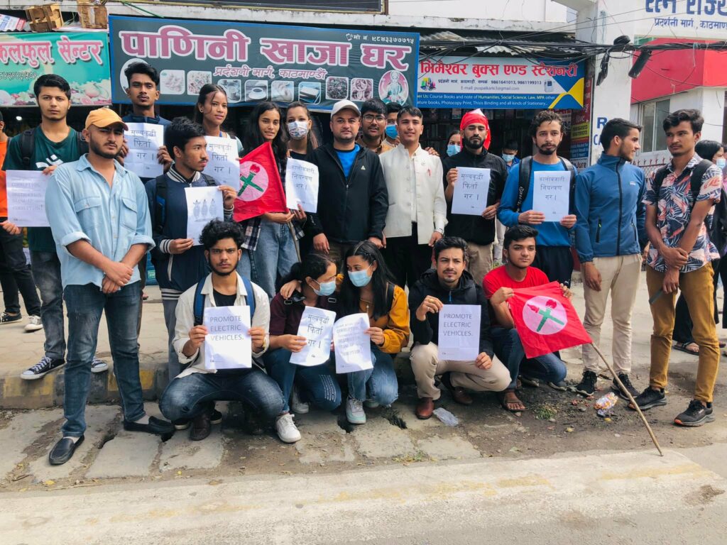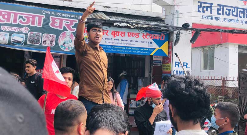 प्रदर्शनीमार्गमा बिहीबार बिहान नेविसंघको आरआर क्याम्पस ईकाइले मूल्य वृद्धिविरुद्ध प्रदर्शन गरेको हो ।