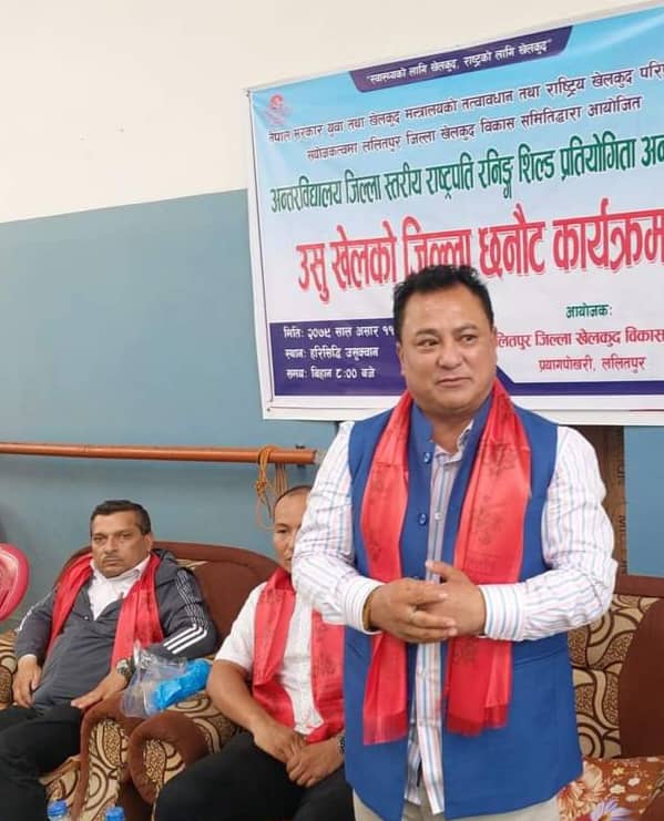 कार्यक्रमको सभापतित्व ललितपुर जिल्ला खेलकुद विकास समितिका अध्यक्ष विनोद महर्जनले गरेका थिए । सो कार्यक्रमका प्रमुख अतिथि महर्जनले पुरस्कार प्रदान गरेका थिए । युवा नेता महर्जन खेलकुद र ललितपुर कांग्रेसमा लोकप्रिय मान्छिन् ।