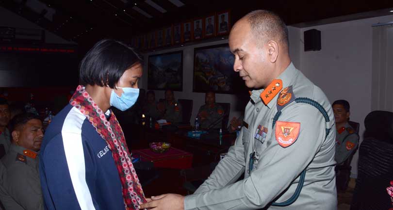 काठमाडौं । सशस्त्र प्रहरी बल नेपालका सशस्त्र प्रहरी महानिरीक्षक (आईजीपी) राजु अर्यालले ‘४४औं राष्ट्रिय एथलेटिक्स प्रतियोगिता’मा नेपाल एपीएफ क्लवका पदक विजेता खेलाडीहरूलाई सम्मान गरेका छन् ।