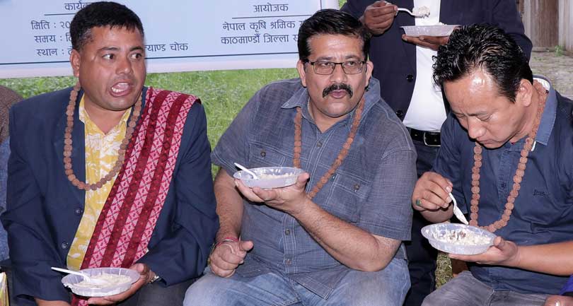 काठमाडौंमा बुधबार आयोजित राष्ट्रिय धान दिवसको कार्यक्रममा तत्कालीन तरुण दलका अध्यक्ष जितजंग बस्नेत, उपाध्यक्ष उत्तम चापागाइँ र कोषाध्यक्ष विद्वान गुरुङ एकसाथ देखिएका हुन् ।