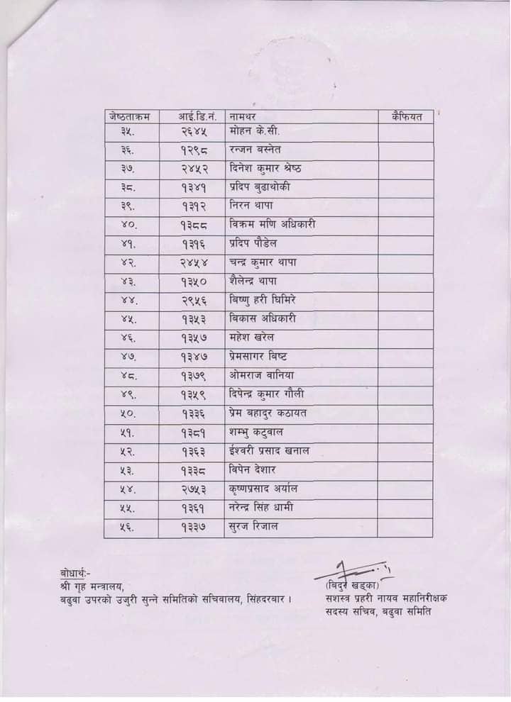 यी हुन् बढुवा सिफारिसमा परेका ५६ जना इन्स्पेक्टरहरु ?