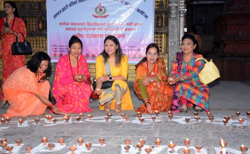 सशस्त्र प्रहरी परिवार महिला संघले राष्ट्रका लागि ज्यानको आहुती दिएका ज्ञात अज्ञात बीर शहीदहरूको आत्माको चीर शान्तिको कामना गर्दै असार १६ गते स्वयम्भूनाथ स्तुपामा दीप प्रज्वलन गरेको छ ।