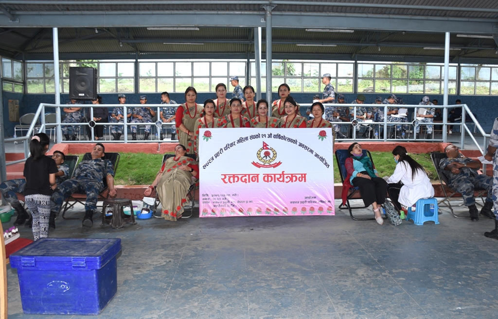 शनिबार सशस्त्र प्रहरी परिवार महिला संघको २१औं वार्षिकोत्सवको अवसरमा रक्तदान कार्यक्रमको आयोजना गरिएको छ ।