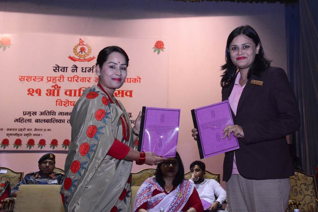 काठमाडौं । सशस्त्र प्रहरी परिवार महिला संघको २१औं वार्षिकोत्सव विविध कार्यक्रमको आयोजना गरी सम्पन्न भएको छ ।