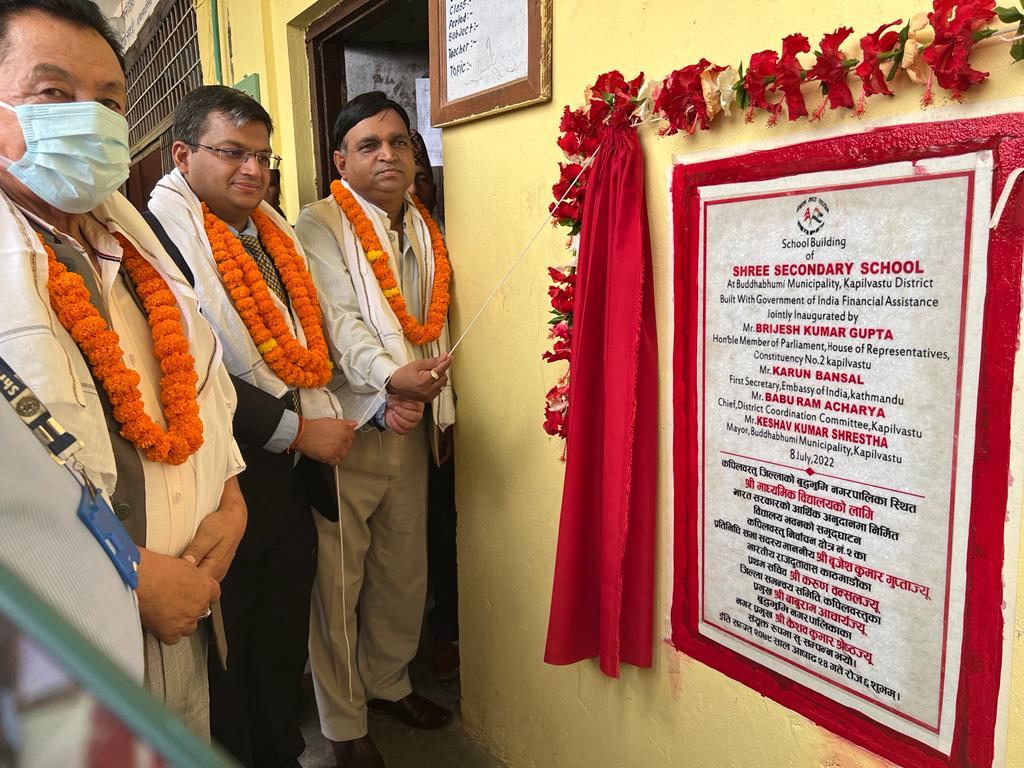 काठमाडौं । काठमाडौंस्थित भारतीय राजदूतावासका प्रथम सचिव करुण वंशलले बुद्धभूमि नगरपालिकामा श्री माध्यमिक विद्यालयका लागि निर्मित विद्यालयको भवनको उद्घाटन गरेका छन् ।