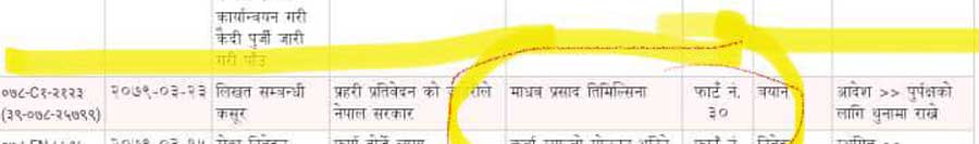 ‘जन्म मिति २०२६–१२–२६, रजिष्ट्रेसन नं.१४९१५–८९ भएको पाटन बहुमुखी क्याम्पसबाट स्नातक तह उत्तीर्ण गरेको माधवप्रसाद तिमल्सिनाको नाममा जारी भएको चारित्रिक प्रमाणपत्र र ःबमजबख एचबकबम त्ष्mबकिष्लब त्रि.वि.दर्ता नं. १४९१५–८९,Patan Multiple Campus को Bachelor’s Degree in Humanities and Social Sciences, को ट्रान्स्कृप्ट कीर्ते गरी मिति २०७८/१२/०६ गते निवेदन साथ राष्ट्रिय सहकारी विकास वोर्डमा पेश गरेकोले निजलाई मिति २०७९–०३–१४ गते ललितपुर जिल्ला थसीखेलबाट पक्राउ गरी लिखत सम्बन्धि कसूरमा सम्मानित जिल्ला अदालत काठमाडौंबाट दिन– ५ म्याद लिई अनुसन्धान भइरहेको व्यहोरा सूचित गरिन्छ’, यसअघि सीआईबीद्वारा जारी विज्ञप्तिमा उल्लेख छ ।