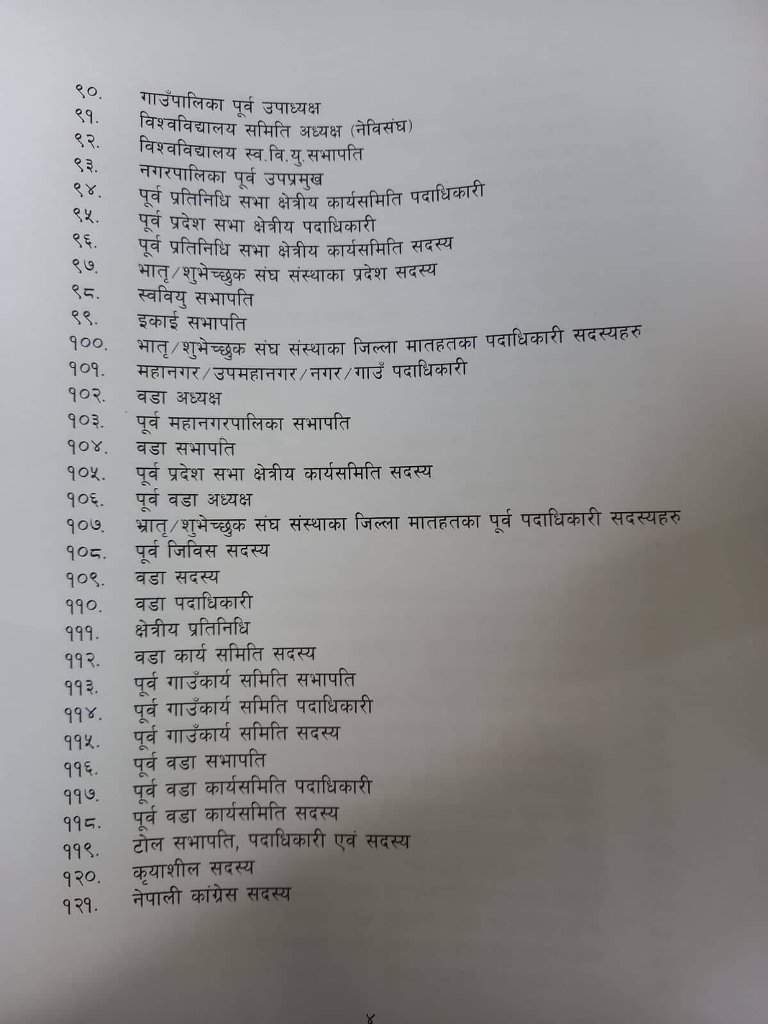 १२१औँ वरीयताक्रम निर्धारण गरेको कांग्रेसले १२०औँमा क्रियाशील सदस्य र १२१औँमा नेपाली कांग्रेस सदस्य रहने उल्लेख छ ।