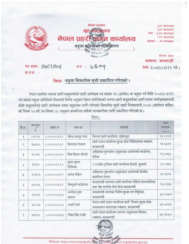 यी ३६ जना डीएसपीको एसपीमा बढुवा सिफारिस, सूचीमा दाङले पनि अवसर पायो