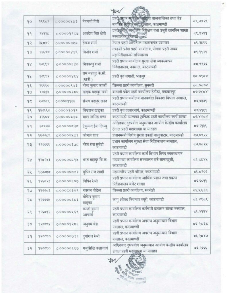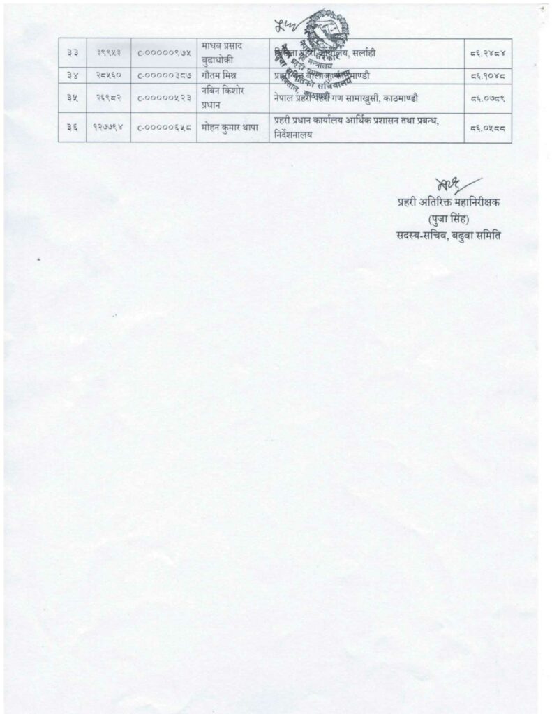 डीएसपीबाट एसपीमा बढुवा सिफारिस पर्नेहरूमा मित्रबन्धु शर्मा, विनोद शर्मा, विश्वराज खड्का, काजीकुमार आचार्य, भरतबहादुर बिक, बालनरसिंह राणालगायत रहेका छन् ।