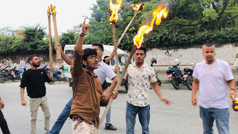 नेविसंघद्वारा काठमाडौंमा मसाल प्रदर्शन, एमालेका अधिकारीको सातोपुत्लो उड्यो