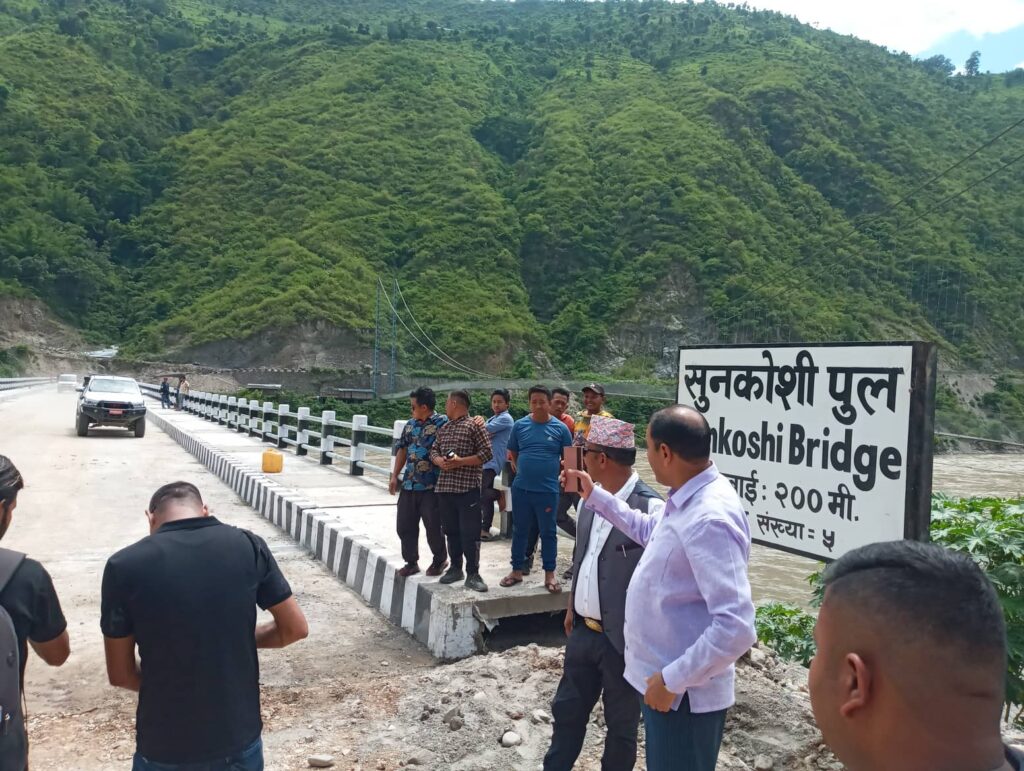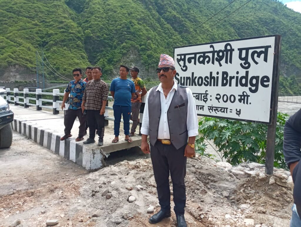कांग्रेस नेता खतिवडाको पहलमा बनेको सुनकोशीको नवलपुर पुलको अनुगमन, अब उद्घाटन हुने