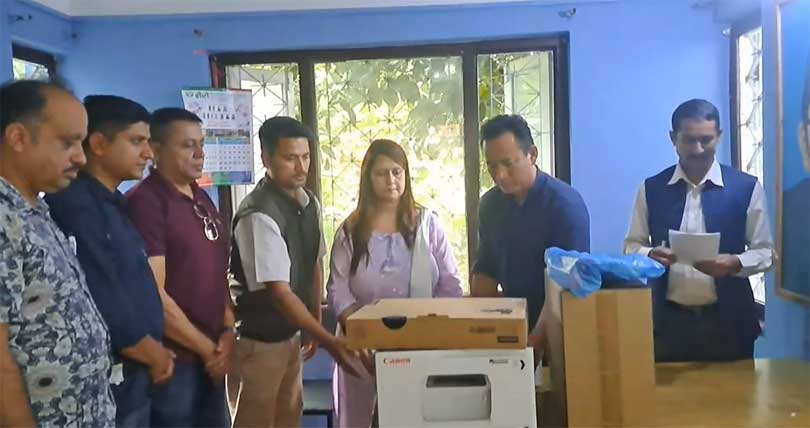 अर्यालले ल्यापटप १ थान, डेस्क्टप कम्प्युटर १ थान, हार्ड डिस्क १ थान, प्रिन्टर १ थान र किबोर्ड १ थान तरुण अध्यक्ष गुरुङलाई उपलब्ध गराएका छन् ।