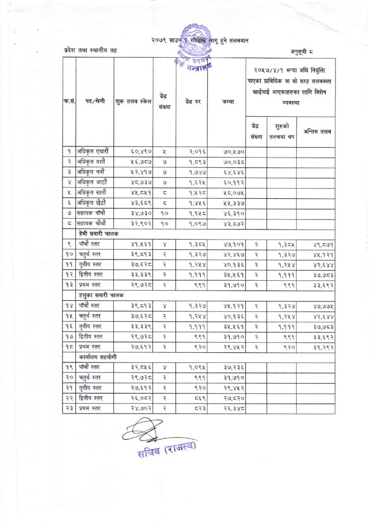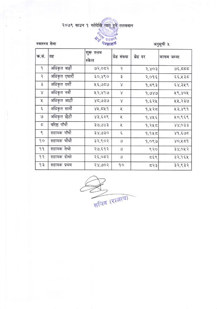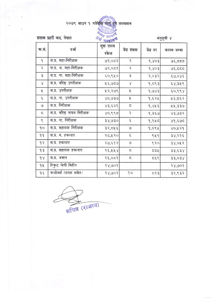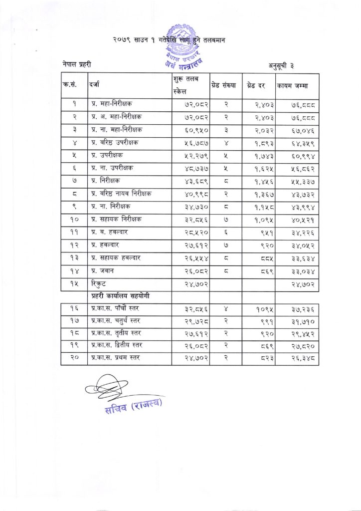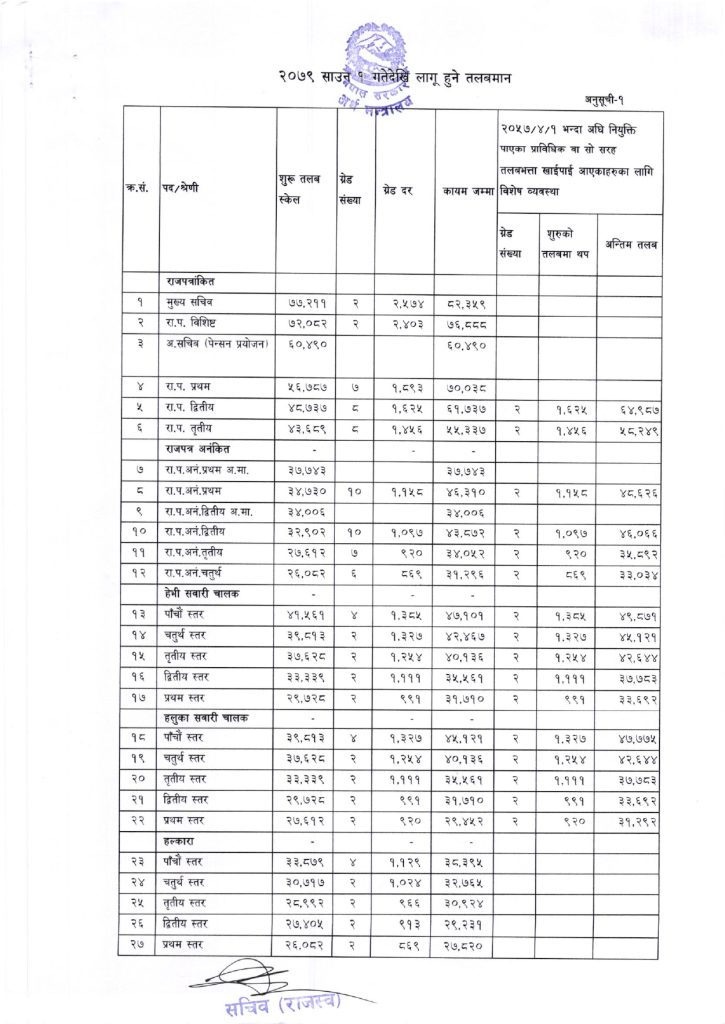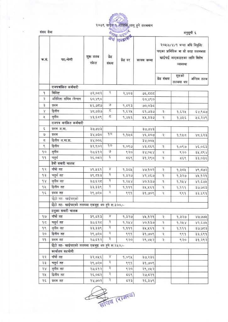 निजामती-सुरक्षाकर्मीसहित सबै कर्मचारीको यस्तो छ नयाँ तलबमान, कसको कति ?