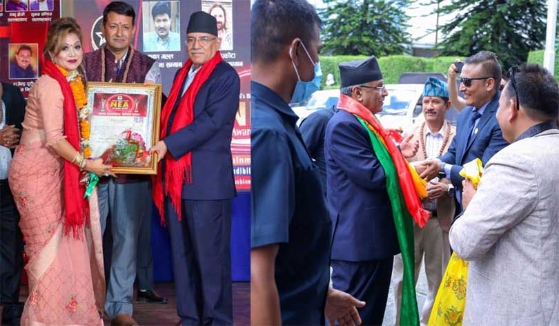 वरिष्ठ सौन्दर्यविद् रश्मिला ‘नारीरत्न’बाट सम्मानित, प्रचण्डले दिए शुभकामना