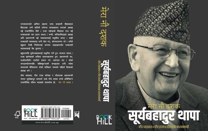 स्व.सूर्यबहादुर थापाको आत्मकथाको किताबको आवरण सार्वजनिक