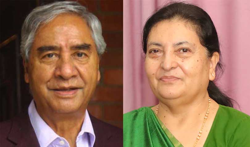 काठमाडौं । नेपाली कांग्रेसका सभापति समेत रहेका प्रधानमन्त्री शेरबहादुर देउवा र राष्ट्रपति विद्यादेवी भण्डारीबीच भेटवार्ता भएको छ ।