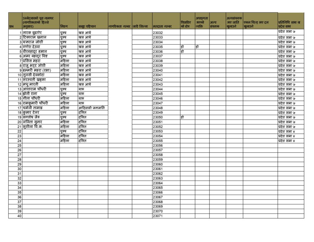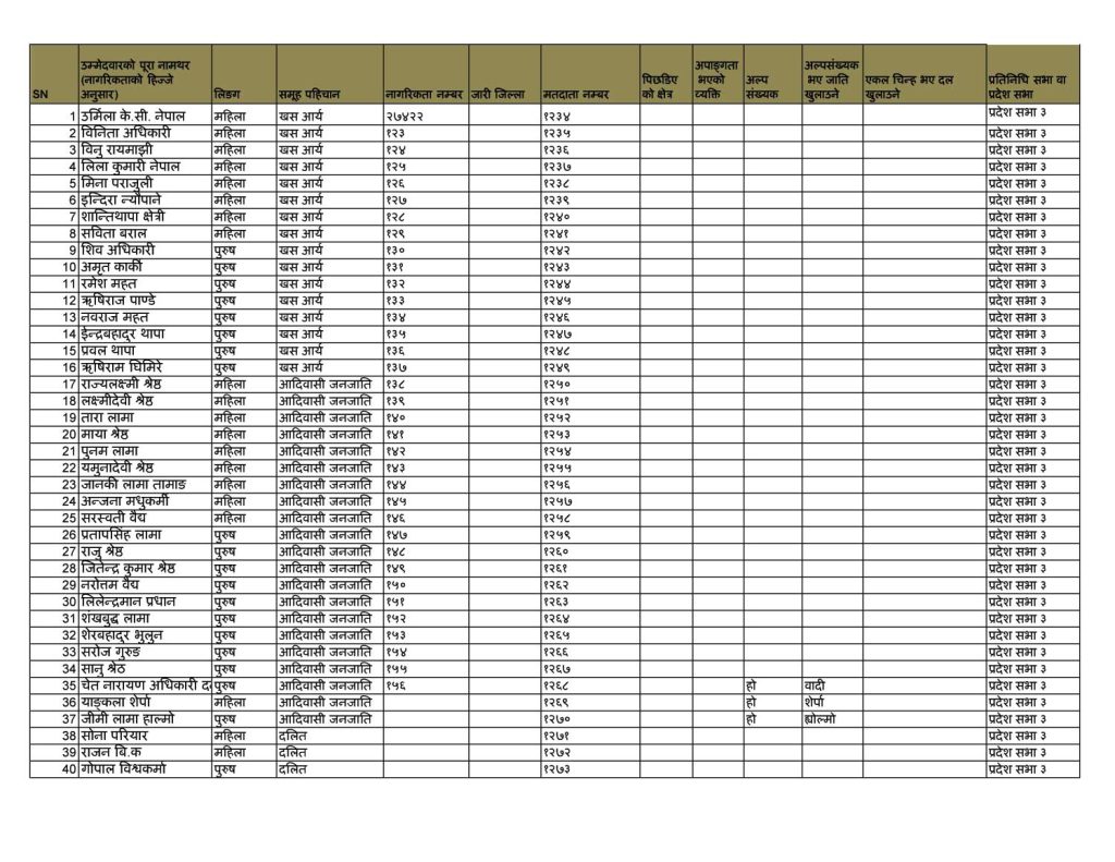 यसअघि शनिबार प्रतिनिधि सभातर्फका समानुपातिकका उम्मेदवारहरूको नाम सार्वजनिक भएको थियो ।