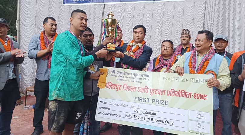 गोदावरी । ललितपुर जिल्लाव्यापी खुल्ला फुटबल प्रतियोगिताको उपाधी गोदावरी नगरपालिका–११ चापागाउँको चन्द्र भैरव युवा क्लवले कब्जा गरेको छ ।