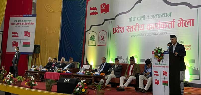 सत्तागठबन्धनले शुक्रबार बुटवलमा पनि कार्यक्रम राखेको छ । कार्यक्रमलाई शीर्ष नेताहरूले सम्बोधन गर्दै सत्तागठबन्धनका उम्मेदवारहरूलाई विजयी बनाउन अपील गरेका छन् ।