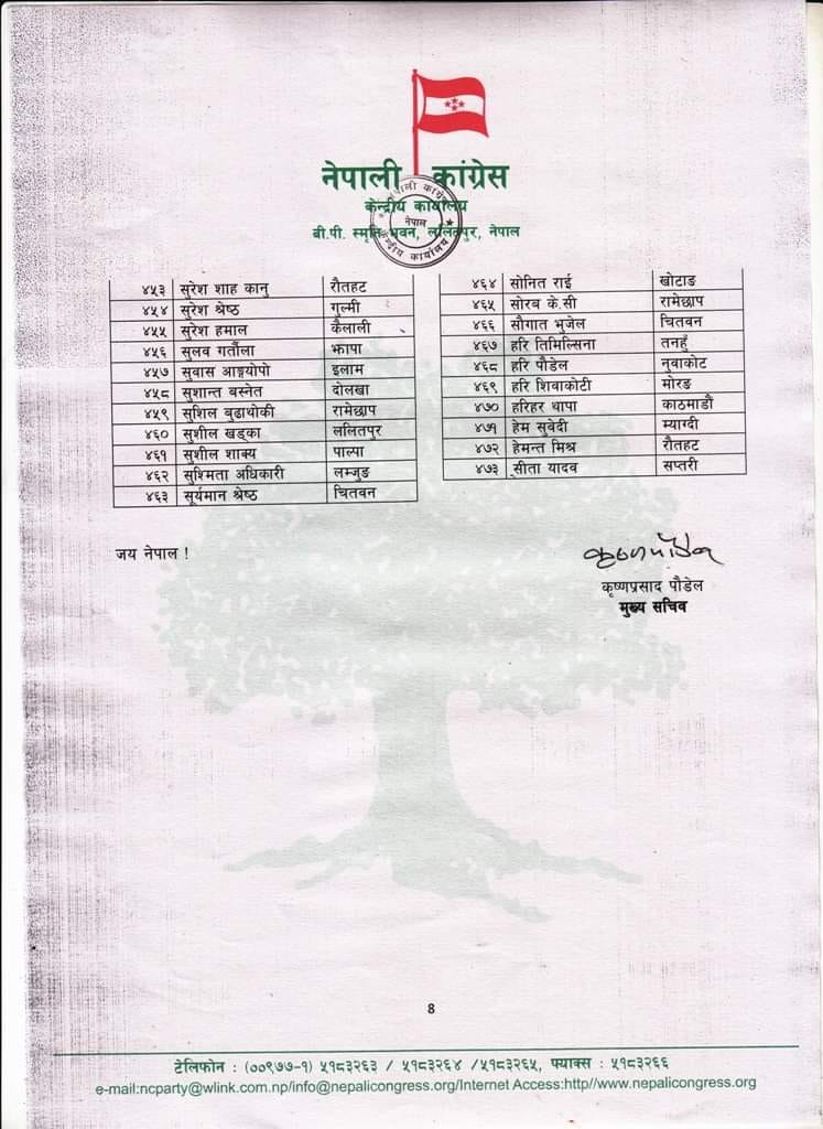 कांग्रेसले केन्द्रीय समितिबाट बुधबार गरेका निर्णयहरू