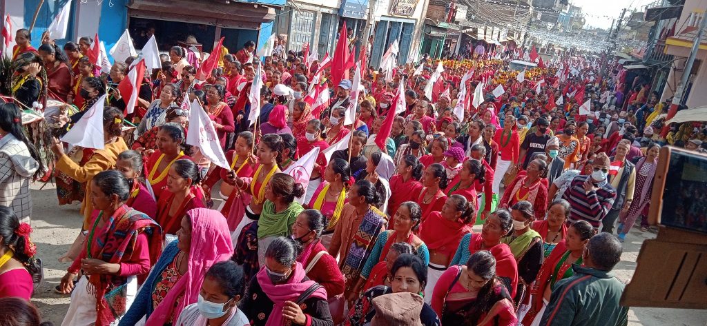 घोराही । दाङ क्षेत्र नं. २ का लोकतान्त्रिक वाम गठबन्धनका उम्मेदवारहरुको समर्थनमा महिलाहरुले उत्साहजक सहभागिता जनाएका छन् ।