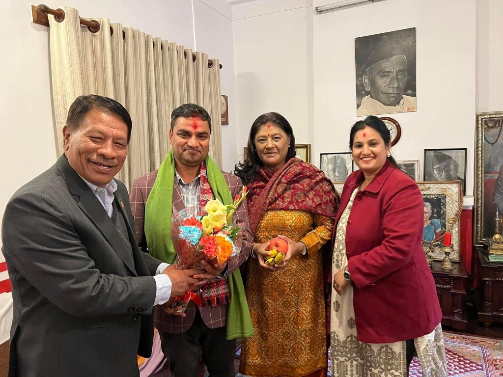 सोमबार बिहान काठमाडौंको ठमेलस्थित निवासमा पौडेलले नेता सिंहसँग भेट गरेका हुन् । नेता सिंहले पौडेललाई काठमाडौं ५ मा प्राप्त सफलताप्रति शुभकामना समेत दिएका छन् ।