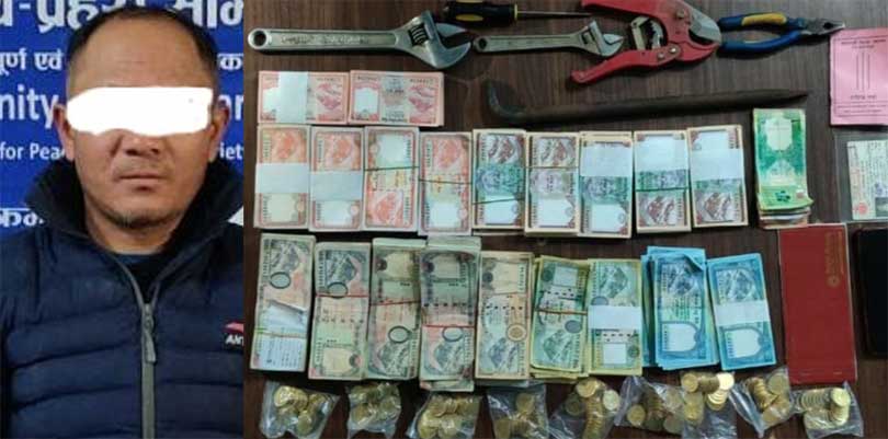 प्रहरी वृत्त बौद्धबाट प्रहरी परिचालन गरी अनुसन्धानका विविध विधि र प्रविधिसमेतको प्रयोग गरी चोरी गर्ने गिरोहमा संलग्न व्यक्तिको खोजतलास गर्ने क्रममा गोकर्णेश्वर नगरपालिका ५ जोरपाटी बस्ने तामाङलाई चोरीमा प्रयोग गर्ने औजार र नगदसहित नियन्त्रणमा लिइएको विज्ञप्तिमा उल्लेख छ ।
