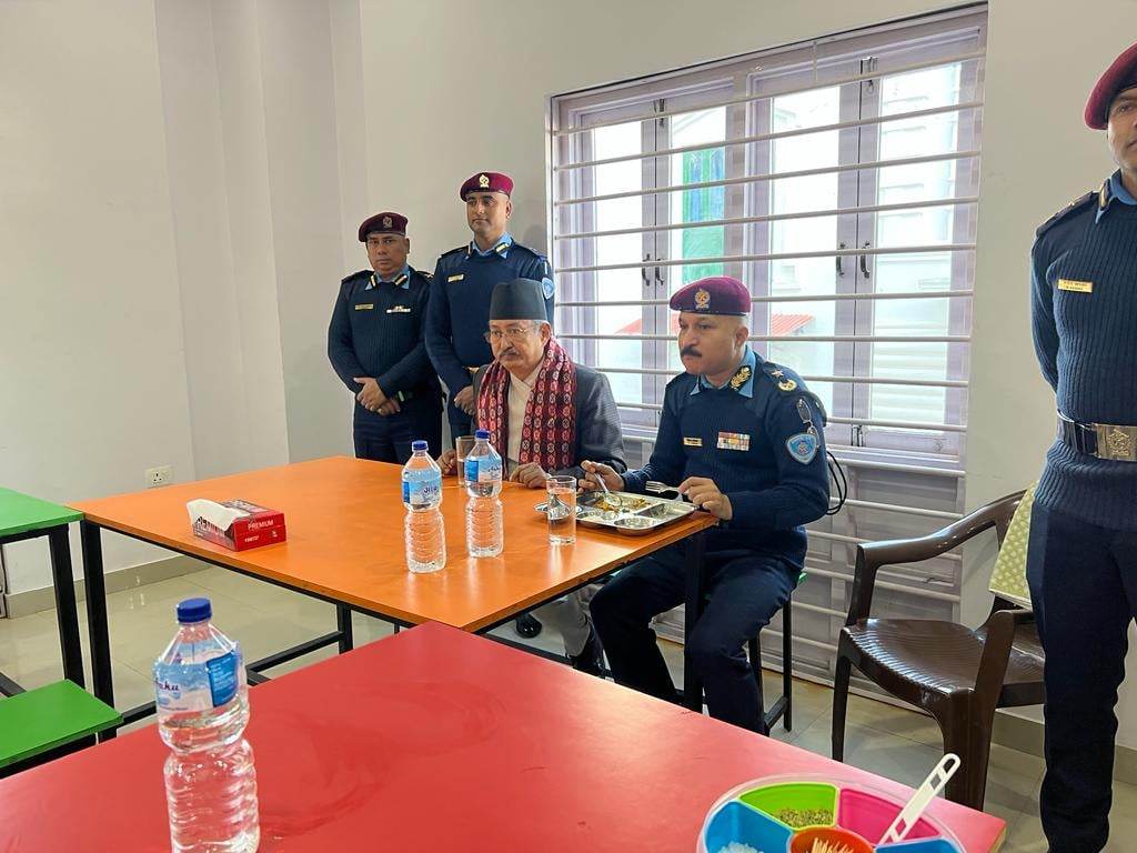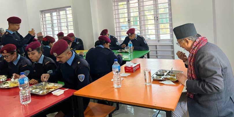 प्रहरीको मनोबल बढाउन गृहमन्त्री खाणले प्रहरीसँगै खाना खाए