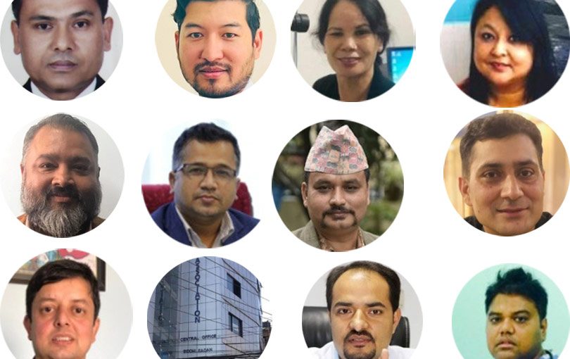अध्यक्षमा डा.अनिल विक्रम कार्की, वरिष्ठ उपाध्यक्षमा डा.बद्री रिजाल, उपाध्यक्ष (प्रदेश १) मा डा.विपेश आचार्य, उपाध्यक्ष (मधेश प्रदेश)मा डा.निरजकुमार सिंह, उपाध्यक्ष (बागमती प्रदेश)मा डा.प्रकाश बुढाथोकी, उपाध्यक्ष (गण्डकी प्रदेश)मा डा.राजन शर्मा, उपाध्यक्ष (लुम्बिनी प्रदेश)मा डा.नन्दाकुमारी गुरुङ, उपाध्यक्ष (कर्णाली प्रदेश)मा डा.केशरबहादुर ढकाल, उपाध्यक्ष (सुदूरपश्चिम प्रदेश)मा डा.प्रशान्त भट्ट छन् ।