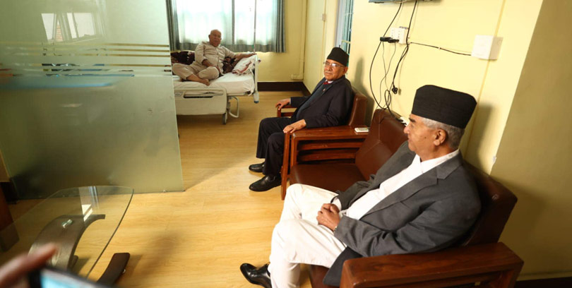 बुधबार देउवा र माओवादी केन्द्रका अध्यक्ष पुष्पकमल दाहाल ‘प्रचण्ड’ले त्रिवि शिक्षण अस्पतालमा पुगेर अध्यक्ष नेपालको स्वास्थ्य अवस्थाका बारेमा जानकारी लिएका हुन् ।