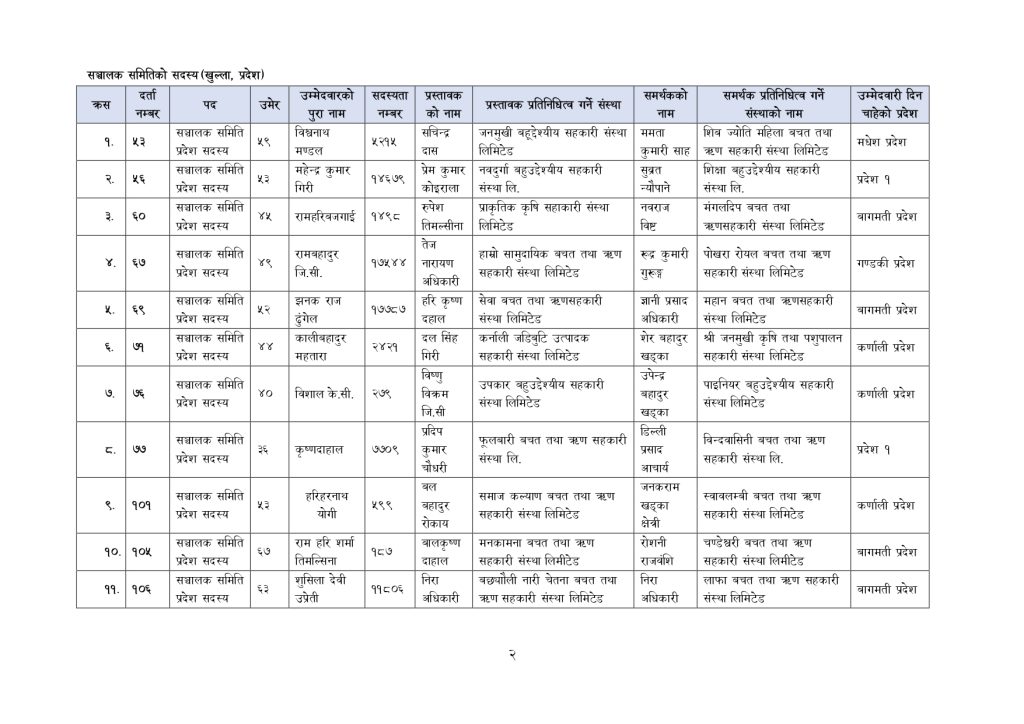 बाँकी पदाधिकारी र सदस्यमा चुनाव हुनेछ । निर्वाचन समितिका अनुसार गण्डकी प्रदेशबाट रामबहादुर जिसी निर्विरोध भएका छन् । मधेशबाट विश्वनाथ मण्डल निर्विरोध भएका छन् ।