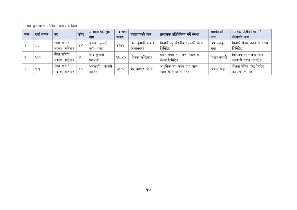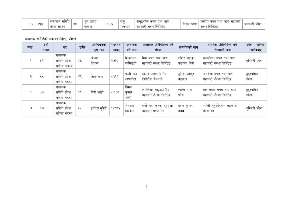समितिमा प्रदेशगत, खुल्ला र महिला कोटाबाट उम्मेदवारी दिएका केही सदस्य निर्विरोध भएका छन् ।