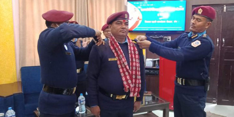 काठमाडौं । जिल्ला प्रहरी कार्यालय रौतहटका प्रहरी प्रमुख (एसपी) वीरबहादुर बुढा मगरले असईबाट सई पदमा बढुवा भएका अमिरा साहलाई दर्ज्यानी चिन्ह प्रदान गरेका छन् ।