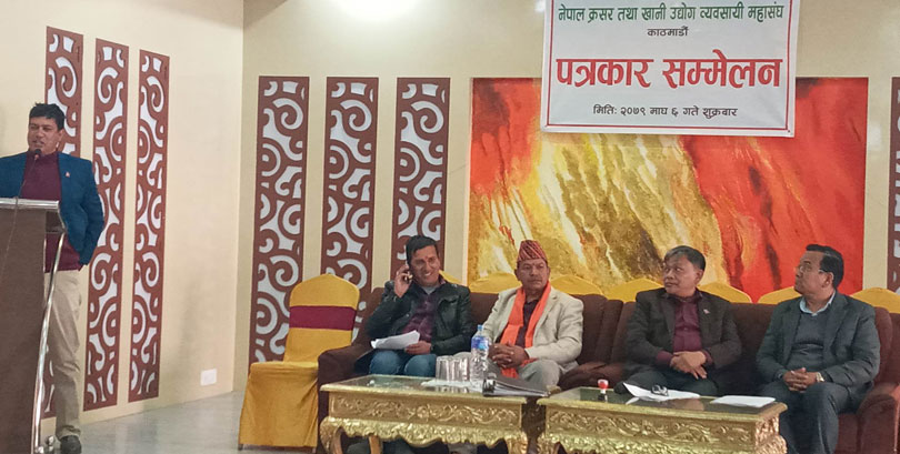काठमाडौं । नेपाल क्रसर तथा खानी उद्योग व्यवसायी महासंघले उप–प्रधान एवम् गृहमन्त्री रवि लामिछानेको आदेशले गर्दा निर्माण उद्योग धरासायी हुने अवस्थामा पुगेको जनाएको छ ।