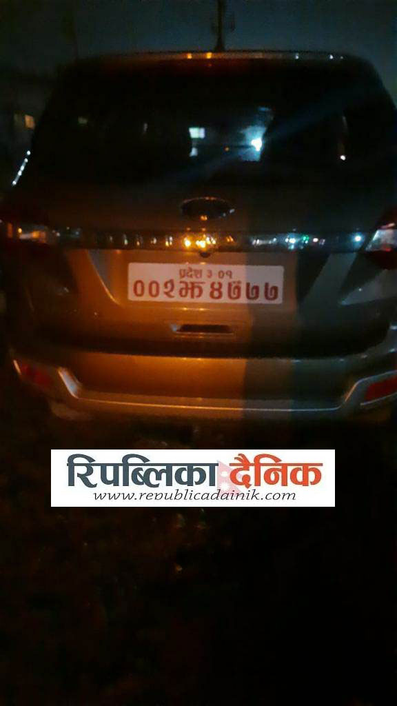 उनीहरूलाई राति प्रहरीबाट छुटाउन पुगेको सेतो नम्बर प्लेटको गाडी प्रदेश ३ ०१ ००२ झ ४७७७ फोर्ड कम्पनीको थियो ।