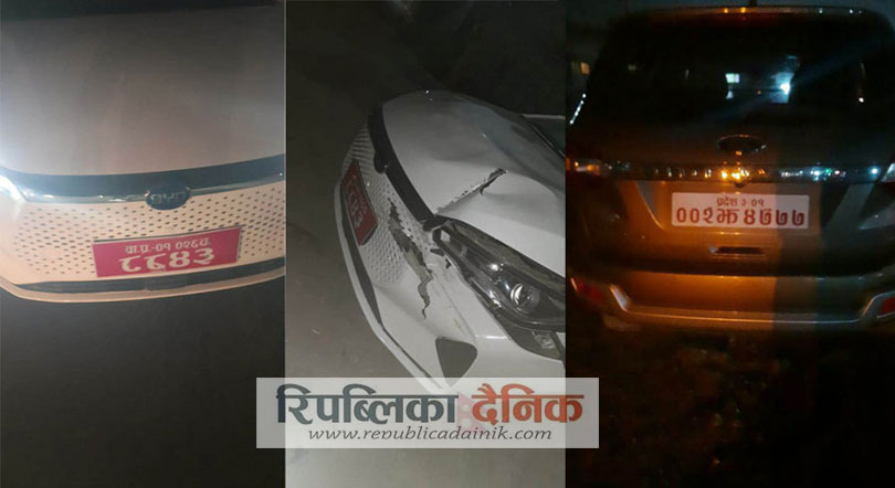 उनीहरू चढेको गाडीको अगाडिको भाग फुटेको छ । एआइजीको गाडीलाई पछाडिबाट हानेर क्षति पुर्याइएको छ ।