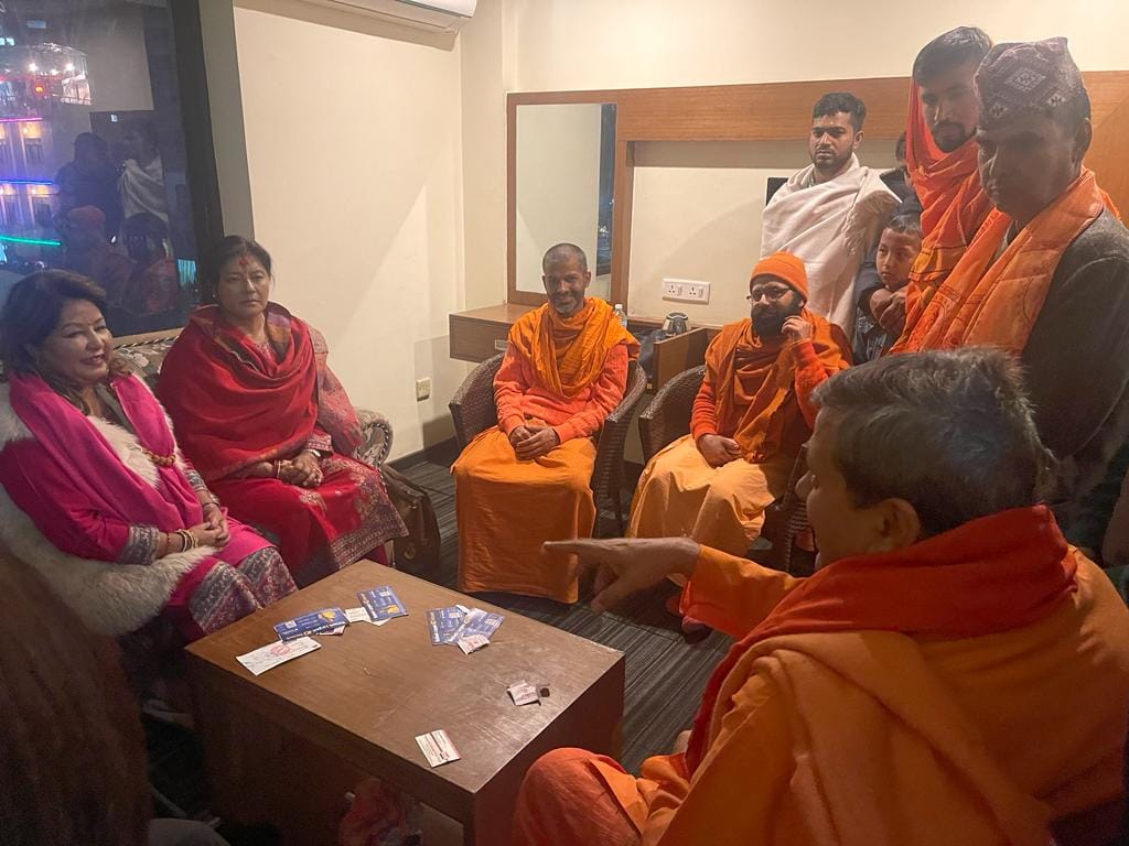 आरजु राणाले निश्चलानन्द सरस्वतीसँग आशीर्वाद लिइन्, कांग्रेसका को–को नेता पुगे ?