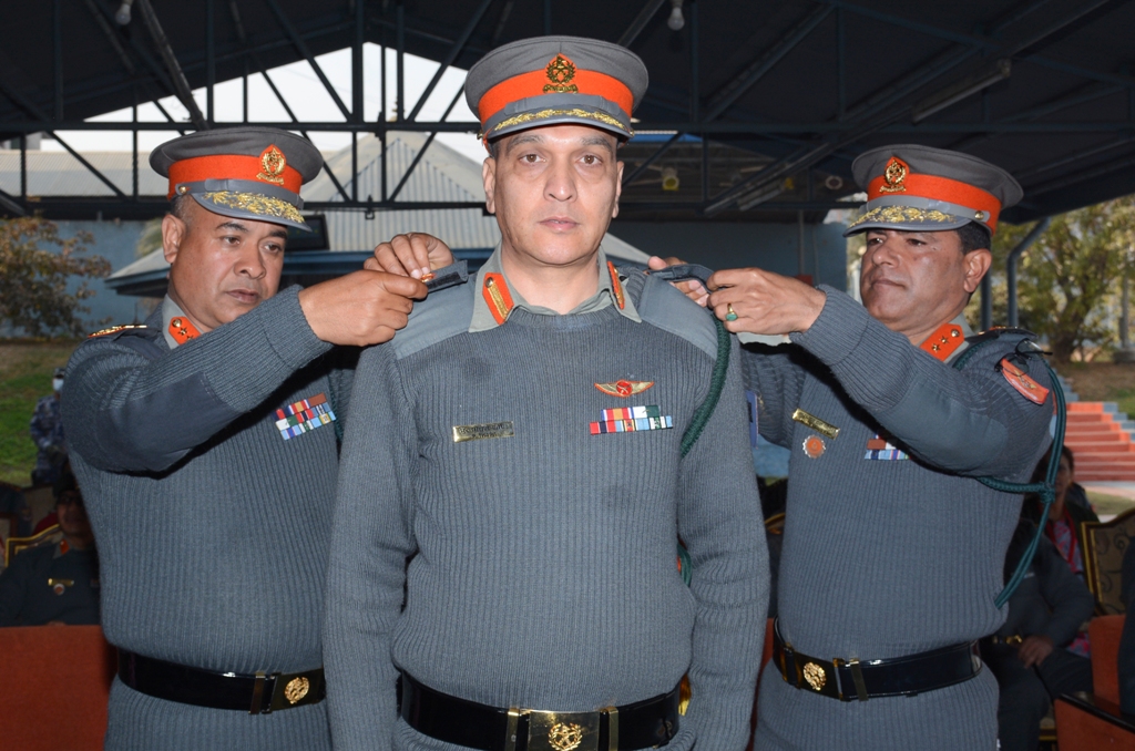 काठमाडौं । सशस्त्र प्रहरी बल नेपालका सशस्त्र प्रहरी महानिरीक्षक (आईजीपी) राजु अर्यालले बढुवा भएका उच्च अधिकारीहरूलाई दर्ज्यानी चिन्ह प्रदान गरेका छन् ।