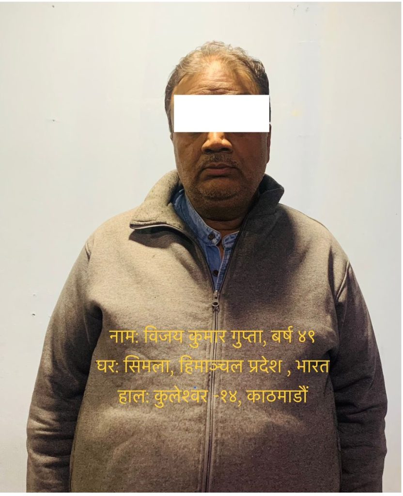 काठमाडौं । काठमाडौं उपत्यका अपराध अनुसन्धान कार्यालय, मीनभवनले भारतीय नागरिक ४९ वर्षीय विजयकुमार गुप्तालाई पक्राउ गरेको छ ।