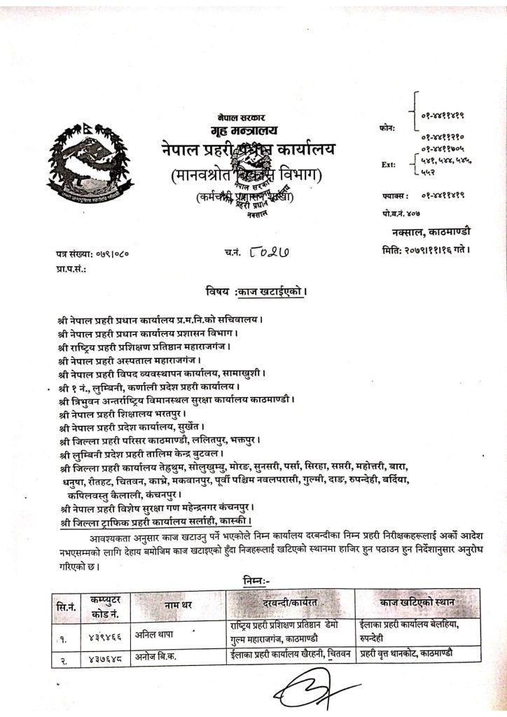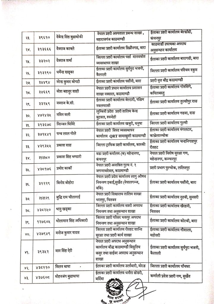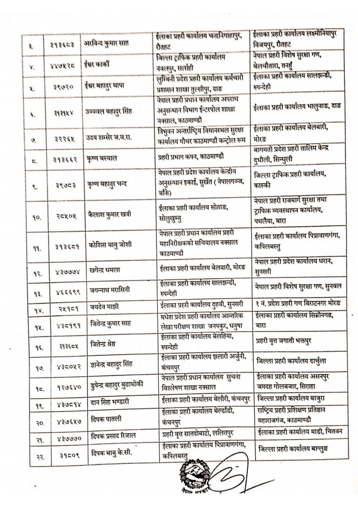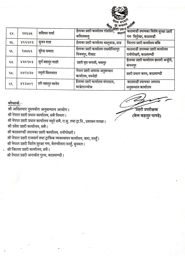 प्रहरीका यी ६९ जना ईन्स्पेक्टरहरूको काज सरुवा, को कहाँ पुगे ?