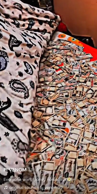 आचार्यले एक हजार र ५ सय दरका नोटहरू ओछ्यानमा बिछ्याएर सुतेको भिडियो बनाइ टिकटकमा राखेका थिए ।