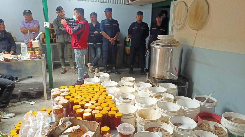 सो स्थानमा गई चेकजाँच गर्ने क्रममा अखाद्य वस्तु मिसावट गरिएको तयारी मह र मह बनाउन प्रयोग हुने कच्चा पदार्थसहित संचालकलाई नियन्त्रणमा लिइएको छ ।
