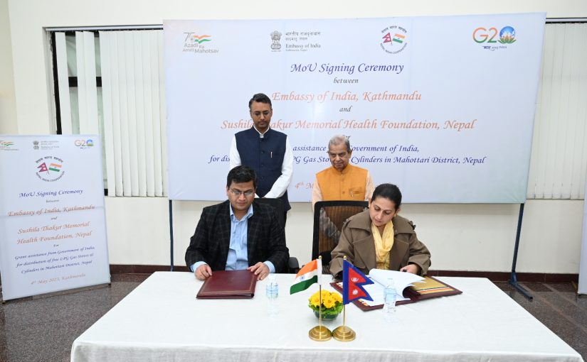 महोत्तरी जिल्लामा एलपीजी ग्यास चुल्हो र ग्यास सिलिण्डर वितरण हेतु भारतीय राजदूतावास, काठमाडौं र सुशीला ठाकुर स्मृति स्वास्थ्य फाउण्डेसनबीच शुक्रबार एक समझदारीपत्रमा हस्ताक्षर भएको छ ।