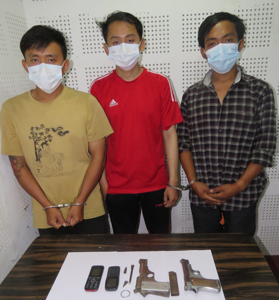 धरान उप–महानगरपालिका–१७ डाँडाघोपा बस्ने २९ वर्षीय हुकमेन जिमी र वडा नम्बर १५ शहीद मार्ग बस्ने २४ वर्षीय रोहित राईलाई २ थान अटोमेटिक पेस्तोलसहित आइतबार राति प्रहरीले पक्राउ गरेको विज्ञप्तिमार्फत जनाएको छ । पक्राउ पर्नेमा धरानको वडा नं. १७ डाँडा घोपा बस्ने वर्षका २४ वर्षीय दीपक जिमी पनि रहेका छन् ।