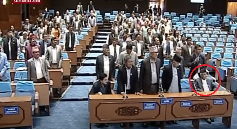 आइतबारको संसद अबरोध गर्दा एमालेका अध्यक्ष समेत रहेका संसदीय दलका नेता खड्गप्रसाद ओली पनि आएका थिए । सदनमा उपस्थित भएका ओली शुरुमा उभिएका थिएनन् । पछि उभिएर विरोध गरेका थिए । एमालेका सबै सांसदहरू उभिएका बेला ओली कुर्सीमा बसेर रमिता हेरेका थिए । पछि आलोचना हुने डरले उभिएर विरोध गरेका थिए ।