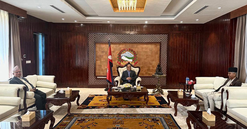 मंगलबार बालुवाटारमा दाहालले देउवा र नेपालसँग पछिल्लो राजनीतिक अवस्थाका विषयमा परामर्श गरेका हुन् । तीन शीर्ष नेताबीच संसदमा छलफलमा रहेको बजेटलाई समयमा पारित गर्ने विषयमा पनि सहमति बनेको बुझिएको छ ।